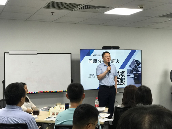 2021年6月10日,精英计划—领导力提升训练营迎来第三次课程—《问题分析与解决—关键任务推进》,共有40多位管理者参加本次培训。正式授课前,公司董事长兼首席执行官余浩先生为培训课程致开训辞,就企业的发展、管理层在发展中的重要性及对管理层不断学习成长的期许分享了看法,并期望各位学员在培训中有所收获。