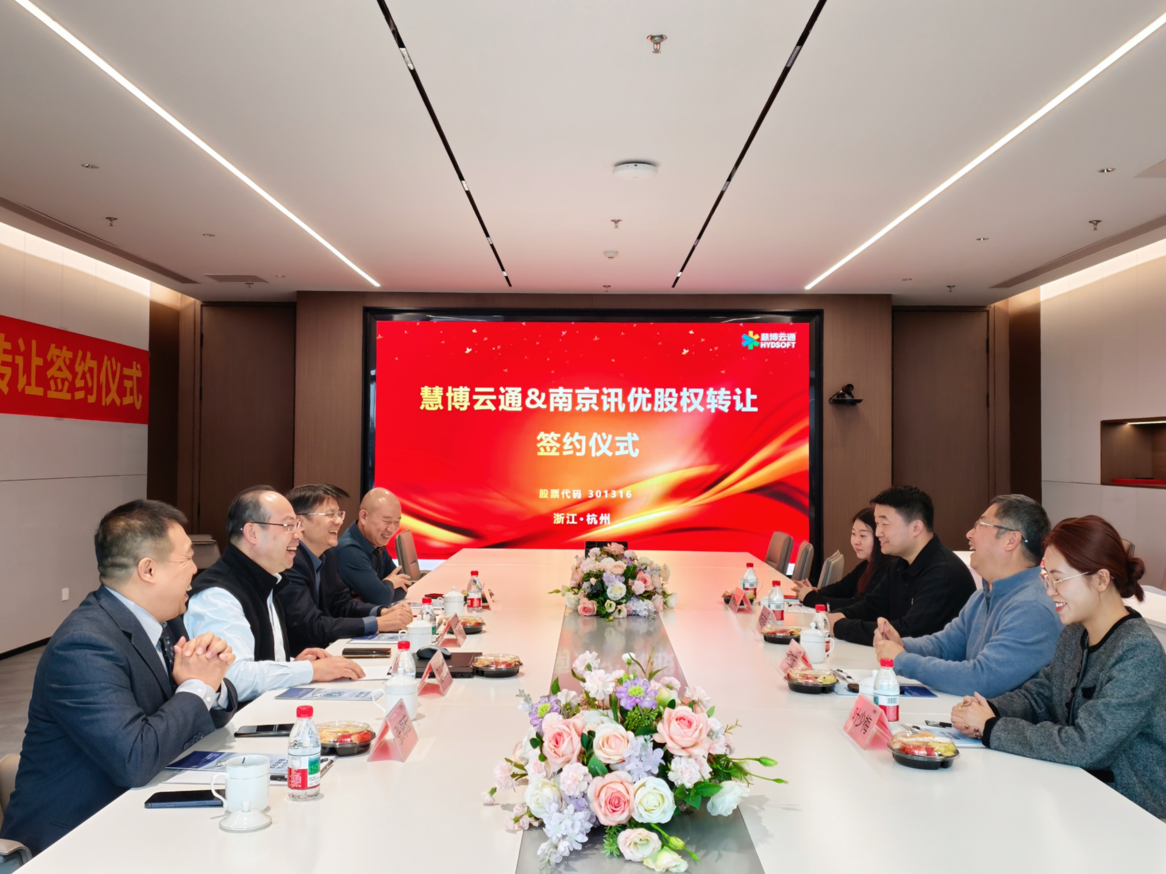 1月23日,凯发官网k8旗下子公司金锐软件成功完成对南京讯优智超软件科技有限公司100%股权的收购,股权转让签约仪式在杭州总部隆重举行。凯发官网k8副董事长兼首席执行官孙玉文、执行副总裁林建军,南京讯优总经理蒋立宏、副总经理陈连祥等双方代表共同出席仪式。